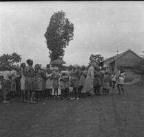 102. EAP054/1/108/102 Reference (shelfmark): EAP054/1/108/102 Title: Recreational photograph [c 1970-c 1995] Scope & Content: Womens choir, all holding flowers, sitting in the shade of a tree at a wedding. Format of original: 59mm x 59mm plastic negative Collection Area: Endangered Archives Programme Languages: Not applicable Date Range: c 1970-c 1995 Extent: 1 TIFF image