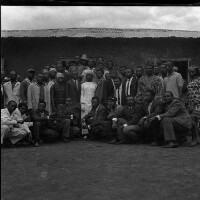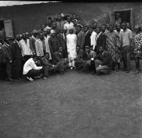 116. EAP054/1/108/116 Reference (shelfmark): EAP054/1/108/116 Title: Recreational photograph [c 1970-c 1995] Scope & Content: Group of over 30 people with a bridal couple, mud brick building with corrugated iron roof behind. Format of original: 59mm x 59mm plastic negative Collection Area: Endangered Archives Programme Languages: Not applicable Date Range: c 1970-c 1995 Extent: 1 TIFF image