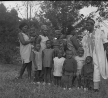 119. EAP054/1/108/119 Reference (shelfmark): EAP054/1/108/119 Title: Recreational photograph [c 1970-c 1995] Scope & Content: Photographer Monsieur Jacques with his wife and his children, trees behind. Format of original: 54mm x 59mm plastic negative Collection Area: Endangered Archives Programme Languages: Not applicable Date Range: c 1970-c 1995 Extent: 1 TIFF image