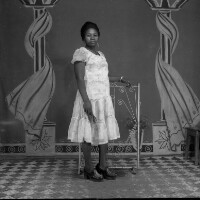 476. EAP054/1/159/476 Reference (shelfmark): EAP054/1/159/476 Title: Recreational photograph [c 1980] Scope & Content: Woman in front of iron grillwork. Format of original: 59mm x 59mm plastic negative Collection Area: Endangered Archives Programme Languages: Not applicable Date Range: c 1980 Extent: 1 TIFF image