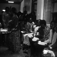65. EAP054/1/173/65 Reference (shelfmark): EAP054/1/173/65 Title: Recreational photograph [c 1989] Scope & Content: Eating at reception Format of original: 59mm x 59mm plastic negative Collection Area: Endangered Archives Programme Languages: Not applicable Date Range: c 1989 Extent: 1 TIFF image