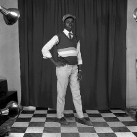 64. EAP054/1/47/64 Reference (shelfmark): EAP054/1/47/64 Title: Recreational photograph [c 1985 - 1986] Scope & Content: Young man from Mbouda standing, right hand on hip. Format of original: 59mm x 59mm plastic negative Collection Area: Endangered Archives Programme Languages: Not applicable Date Range: 1985-1986 Extent: 1 TIFF image