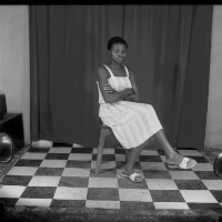 66. EAP054/1/47/66 Reference (shelfmark): EAP054/1/47/66 Title: Recreational photograph [c 1985 - 1986] Scope & Content: Young women from Mbouda sitting on a stool, arms and feet crossed. Format of original: 59mm x 59mm plastic negative Collection Area: Endangered Archives Programme Languages: Not applicable Date Range: 1985-1986 Extent: 1 TIFF image