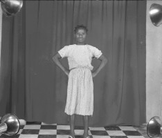 69. EAP054/1/47/69 Reference (shelfmark): EAP054/1/47/69 Title: Recreational photograph [c 1985 - 1986] Scope & Content: Girl from Mbouda, standing, with hands on hips. Format of original: 51mm x 59mm plastic negative Collection Area: Endangered Archives Programme Languages: Not applicable Date Range: 1985-1986 Extent: 1 TIFF image