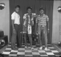 70. EAP054/1/47/70 Reference (shelfmark): EAP054/1/47/70 Title: Recreational photograph [c 1985 - 1986] Scope & Content: 2 young men and a girl between them, one man holding a bag. Format of original: 56mm x 59mm plastic negative Collection Area: Endangered Archives Programme Languages: Not applicable Date Range: 1985-1986 Extent: 1 TIFF image