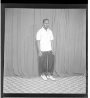 165. EAP449/2/14/165 Reference (shelfmark): EAP449/2/14/165 Title: A man wearing a shirt and large pants standing in profile in the studio. Collection Area: Endangered Archives Programme Languages: Not applicable Date Range: 2nd half od the 20th century Extent: 1 TIFF image
