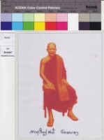 Sathou Nyai Khamchan Virachitta Mahathera, the abbot of Vat Saen Sukharam practices Parivassakam (ritual retreat of purification) at Vat Pa Phon Phao in 1990 (B.E. 2533). Original material consists of: chromogenic print
