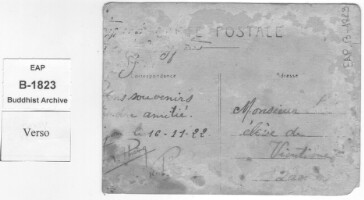 Sathou Nyai Khamchan Virachitta Mahathera, Abbot of Vat Saen Sukharam talking to lay people during giving a sermon of the Vessantara-Jataka in Boun Mahachath (the festival of Prince Vessantara) at Vat Khu Kham, Luang Prabang on 21st March, 1993. Original material consists of: chromogenic print