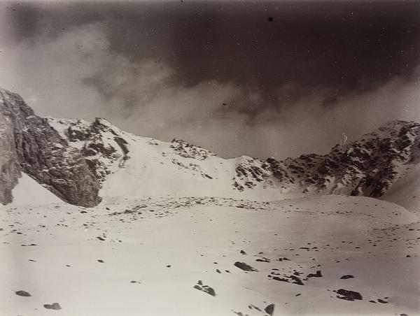 Genre: Landscape Photography Fourth section of six-part panoramic view. The complete panorama comprises prints 135-140. PUBLISHED: 'A third journey of exploration...', fig. 5: 'Panoramic view taken from Karambar Saddle (circ. 14,050 feet above sea level) dividing headwaters of Karambar and Ya...