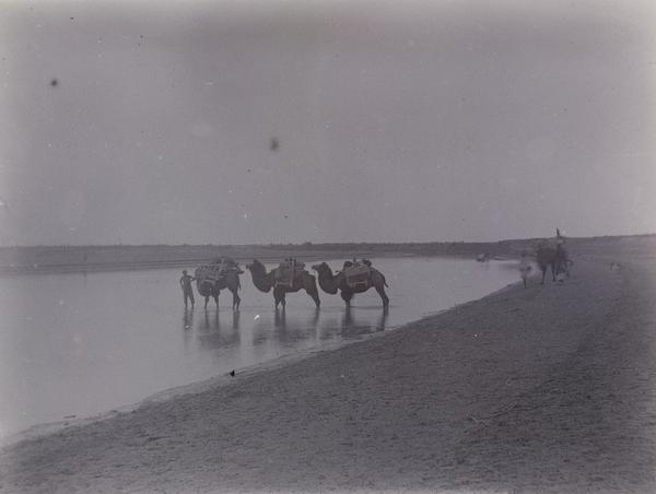 - Genre: Landscape Photography Group of camels crossing the Yarkand River at Kuruk-aste at the start of the first attempt on the Taklamakan (see note at print 226). Subjects = archaeological expeditions; archaeology; camels; exploration; pack animals; river scenes; Stein Collection Location =...