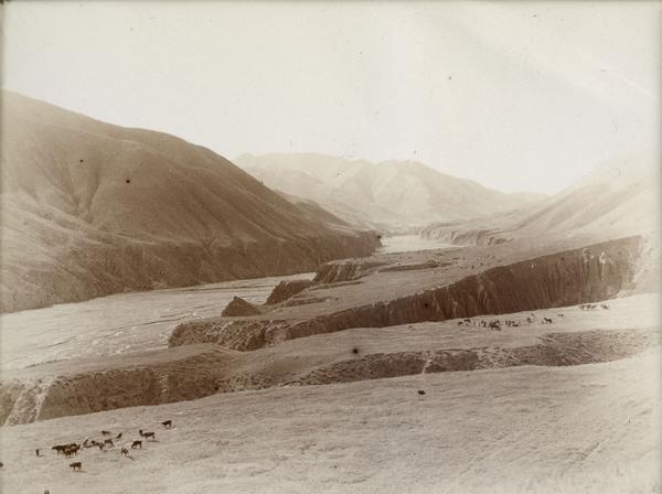 - East wall of ancient town wall at So-yang-chêng, Ch'iao-tzu, breached by wind. Photographer: Stein, Marc Aurel