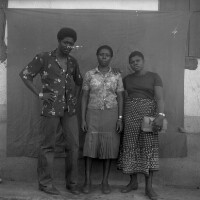 108. EAP054/1/158/455 Reference (shelfmark): EAP054/1/158/455 Title: Recreational photograph [c 1980] Scope & Content: Man standing with 2 women standing Format of original: 59mm x 59mm plastic negative Collection Area: Endangered Archives Programme Languages: Not applicable Date Range: c 1980 Extent: 1 TIFF image