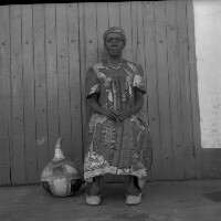 120. EAP054/1/158/109 Reference (shelfmark): EAP054/1/158/109 Title: Recreational photograph [c 1980] Scope & Content: Old woman of Bamougang sitting with a gourd beside her Format of original: 59mm x 59mm plastic negative Collection Area: Endangered Archives Programme Languages: Not applicable Date Range: c 1980 Extent: 1 TIFF image