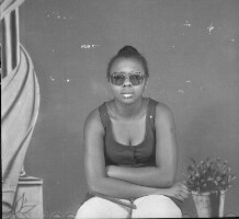 12. EAP054/1/153/124 Reference (shelfmark): EAP054/1/153/124 Title: Recreational photograph [c 1976] Scope & Content: Woman wearing sunglasses Format of original: 54mm x 59mm plastic negative Collection Area: Endangered Archives Programme Languages: Not applicable Date Range: c 1976 Extent: 1 TIFF image