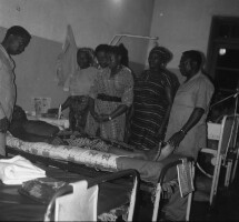 73. EAP054/1/31/258 Reference (shelfmark): EAP054/1/31/258 Title: Recreational photograph [c 1986] Scope & Content: Woman standing by man sitting with bandaged arm and leg Format of original: 59mm x 59mm plastic negative Collection Area: Endangered Archives Programme Languages: Not applicable Date Range: c 1986 Extent: 1 TIFF image