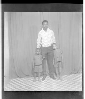 1. EAP449/2/14/164 Reference (shelfmark): EAP449/2/14/164 Title: A man wearing a shirt and pants standing face-forward in between two boys in the studio. Collection Area: Endangered Archives Programme Languages: Not applicable Date Range: 2nd half od the 20th century Extent: 1 TIFF image