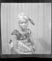 1. EAP449/2/14/548 Reference (shelfmark): EAP449/2/14/548 Title: A woman wearing a camisole, a head wrap, and earrings sitting face-forward in a chair in the studio. Collection Area: Endangered Archives Programme Languages: Not applicable Date Range: 2nd half od the 20th century Extent: 1 TIFF image