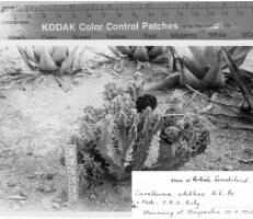 1. EAP923/1/1/1/246 Reference (shelfmark): EAP923/1/1/1/246 Title: Caralluma edithae; in Somalia Scope & Content: Genus: Caralluma, Taxonomic classification: Apocynaceae. Author(s)/Creator(s): PRO Bally. Scribe(s): Jane Chilande. Collection Area: Endangered Archives Programme Languages: Not applicable Date Range: 25 Mar 1952 Extent: 1 tiff image, 3.4 MB