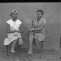 229. EAP054/1/133/229 Reference (shelfmark): EAP054/1/133/229 Title: Recreational photograph [c 1980] Scope & Content: 2 women sitting with crossed legs Format of original: 59mm x 59mm plastic negative Collection Area: Endangered Archives Programme Languages: Not applicable Date Range: c 1980 Extent: 1 TIFF image