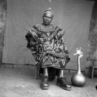89. EAP054/1/133/89 Reference (shelfmark): EAP054/1/133/89 Title: Recreational photograph [c 1980] Scope & Content: Man sitting in traditional robes holding drinking horn, gourd with peace plant beside him Format of original: 59mm x 59mm plastic negative Collection Area: Endangered Archives Programme Languages: Not applicable Date Range: c 1980 Extent: 1 TIFF image