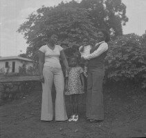 305. EAP054/1/152/305 Reference (shelfmark): EAP054/1/152/305 Title: Recreational photograph [c 1976] Scope & Content: Girl standing between 2 women in front of trees. Format of original: 56mm x 59mm plastic negative Collection Area: Endangered Archives Programme Languages: Not applicable Date Range: c 1976 Extent: 1 TIFF image