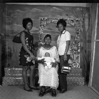 318. EAP054/1/152/318 Reference (shelfmark): EAP054/1/152/318 Title: Recreational photograph [c 1976] Scope & Content: Woman sitting holding a baby in between 2 young women. Format of original: 59mm x 59mm plastic negative Collection Area: Endangered Archives Programme Languages: Not applicable Date Range: c 1976 Extent: 1 TIFF image