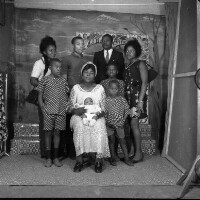 319. EAP054/1/152/319 Reference (shelfmark): EAP054/1/152/319 Title: Recreational photograph [c 1976] Scope & Content: Family group of 9 people. woman sitting with baby at centre Format of original: 59mm x 59mm plastic negative Collection Area: Endangered Archives Programme Languages: Not applicable Date Range: c 1976 Extent: 1 TIFF image