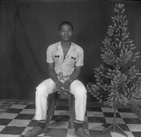 389. EAP054/1/163/389 Reference (shelfmark): EAP054/1/163/389 Title: Recreational photograph [c 1983] Scope & Content: Man sitting by a plastic tree Format of original: 58mm x 59mm plastic negative Collection Area: Endangered Archives Programme Languages: Not applicable Date Range: c 1983 Extent: 1 TIFF image