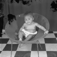 66. EAP054/1/168/66 Reference (shelfmark): EAP054/1/168/66 Title: Recreational photograph [c 1985] Scope & Content: Woman from Babete in full length dress, standing, white bracelets, plants on both sides. Format of original: 59mm x 59mm plastic negative Collection Area: Endangered Archives Programme Languages: Not applicable Date Range: c 1985 Extent: 1 TIFF image