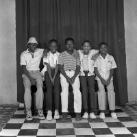 93. EAP054/1/47/93 Reference (shelfmark): EAP054/1/47/93 Title: Recreational photograph [c 1985 - 1986] Scope & Content: Group of five boys sitting on a stepped bench, some with hands crossed, the others with their arms around their neighbours' shoulders. Format of original: 59mm x 59mm plastic negative Collection Area: Endangered Archives Programme Languages: Not applicable Date Range: 1985-1986 Extent: 1 TIFF image