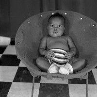 97. EAP054/1/47/97 Reference (shelfmark): EAP054/1/47/97 Title: Recreational photograph [c 1985 - 1986] Scope & Content: Baby in an armchair. Format of original: 59mm x 59mm plastic negative Collection Area: Endangered Archives Programme Languages: Not applicable Date Range: 1985-1986 Extent: 1 TIFF image