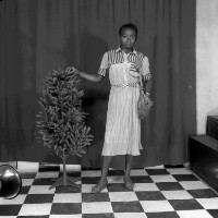 100. EAP054/1/47/100 Reference (shelfmark): EAP054/1/47/100 Title: Recreational photograph [c 1985 - 1986] Scope & Content: Girl with handbag over her shoulder, right hand touching a small plastic tree. Format of original: 59mm x 59mm plastic negative Collection Area: Endangered Archives Programme Languages: Not applicable Date Range: 1985-1986 Extent: 1 TIFF image