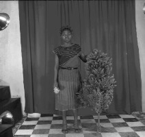 104. EAP054/1/47/104 Reference (shelfmark): EAP054/1/47/104 Title: Recreational photograph [c 1985 - 1986] Scope & Content: Young women from Mbouda touching a plastic tree. Format of original: 56mm x 59mm plastic negative Collection Area: Endangered Archives Programme Languages: Not applicable Date Range: 1985-1986 Extent: 1 TIFF image