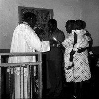 123. EAP054/1/47/123 Reference (shelfmark): EAP054/1/47/123 Title: Recreational photograph [c 1985 - 1986] Scope & Content: Baptism of child by a Catholic priest. Format of original: 59mm x 59mm plastic negative Collection Area: Endangered Archives Programme Languages: Not applicable Date Range: 1985-1986 Extent: 1 TIFF image