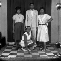126. EAP054/1/47/126 Reference (shelfmark): EAP054/1/47/126 Title: Recreational photograph [c 1985 - 1986] Scope & Content: Group of four people: man between two women plus a girl in front. Format of original: 59mm x 59mm plastic negative Collection Area: Endangered Archives Programme Languages: Not applicable Date Range: 1985-1986 Extent: 1 TIFF image