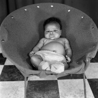 153. EAP054/1/47/153 Reference (shelfmark): EAP054/1/47/153 Title: Recreational photograph [c 1985 - 1986] Scope & Content: Baby in an armchair. Format of original: 59mm x 59mm plastic negative Collection Area: Endangered Archives Programme Languages: Not applicable Date Range: 1985-1986 Extent: 1 TIFF image
