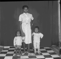 155. EAP054/1/47/155 Reference (shelfmark): EAP054/1/47/155 Title: Recreational photograph [c 1985 - 1986] Scope & Content: Young woman holding a childs hand, left hand on hip, another child beside her. Format of original: 57mm x 59mm plastic negative Collection Area: Endangered Archives Programme Languages: Not applicable Date Range: 1985-1986 Extent: 1 TIFF image