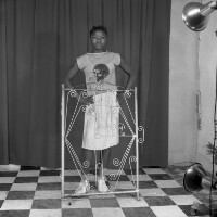 239. EAP054/1/47/239 Reference (shelfmark): EAP054/1/47/239 Title: Recreational photograph [c 1985 - 1986] Scope & Content: Man crouching by iron framework Format of original: 59mm x 59mm plastic negative Collection Area: Endangered Archives Programme Languages: Not applicable Date Range: 1985-1986 Extent: 1 TIFF image
