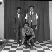 252. EAP054/1/47/252 Reference (shelfmark): EAP054/1/47/252 Title: Recreational photograph [c 1985 - 1986] Scope & Content: 3 men, 2 standing one crouching Format of original: 59mm x 59mm plastic negative Collection Area: Endangered Archives Programme Languages: Not applicable Date Range: 1985-1986 Extent: 1 TIFF image