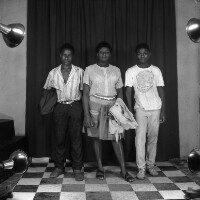 289. EAP054/1/47/289 Reference (shelfmark): EAP054/1/47/289 Title: Recreational photograph [c 1985 - 1986] Scope & Content: 2 men standing with one woman standing in between Format of original: 59mm x 59mm plastic negative Collection Area: Endangered Archives Programme Languages: Not applicable Date Range: 1985-1986 Extent: 1 TIFF image