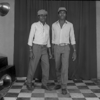 44. EAP054/1/47/44 Reference (shelfmark): EAP054/1/47/44 Title: Recreational photograph [c 1985 - 1986] Scope & Content: 2 boys holding hands, one with right hand on hip. Format of original: 59mm x 59mm plastic negative Collection Area: Endangered Archives Programme Languages: Not applicable Date Range: 1985-1986 Extent: 1 TIFF image