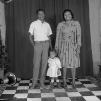 577. EAP054/1/47/577 Reference (shelfmark): EAP054/1/47/577 Title: Recreational photograph [c 1985 - 1986] Scope & Content: Man with right hand in pocket, and woman, a child between them, all standing. Format of original: 59mm x 59mm plastic negative Collection Area: Endangered Archives Programme Languages: Not applicable Date Range: 1985-1986 Extent: 1 TIFF image