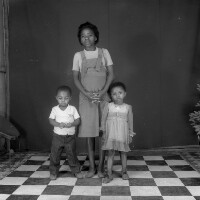 671. EAP054/1/47/671 Reference (shelfmark): EAP054/1/47/671 Title: Recreational photograph [c 1985 - 1986] Scope & Content: Woman and her 2 children, standing. Format of original: 59mm x 59mm plastic negative Collection Area: Endangered Archives Programme Languages: Not applicable Date Range: 1985-1986 Extent: 1 TIFF image