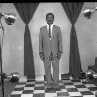 673. EAP054/1/47/673 Reference (shelfmark): EAP054/1/47/673 Title: Recreational photograph [c 1985 - 1986] Scope & Content: Man from Babete in suit and dark tie, smiling, standing. Format of original: 59mm x 59mm plastic negative Collection Area: Endangered Archives Programme Languages: Not applicable Date Range: 1985-1986 Extent: 1 TIFF image