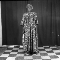 698. EAP054/1/47/698 Reference (shelfmark): EAP054/1/47/698 Title: Recreational photograph [c 1985 - 1986] Scope & Content: Woman from Babadjou standing in dress. Format of original: 59mm x 59mm plastic negative Collection Area: Endangered Archives Programme Languages: Not applicable Date Range: 1985-1986 Extent: 1 TIFF image