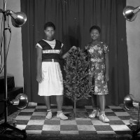 72. EAP054/1/47/72 Reference (shelfmark): EAP054/1/47/72 Title: Recreational photograph [c 1985 - 1986] Scope & Content: 2 young women standing, touching a small plastic tree. Format of original: 59mm x 59mm plastic negative Collection Area: Endangered Archives Programme Languages: Not applicable Date Range: 1985-1986 Extent: 1 TIFF image