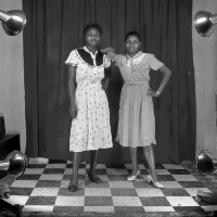 88. EAP054/1/47/88 Reference (shelfmark): EAP054/1/47/88 Title: Recreational photograph [c 1985 - 1986] Scope & Content: 2 young women from Mbouda, one has an arm around the others shoulders and a hand in her pocket. Format of original: 59mm x 59mm plastic negative Collection Area: Endangered Archives Programme Languages: Not applicable Date Range: 1985-1986 Extent: 1 TIFF image