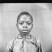 Family of five people: woman sitting with a baby on her lap, and behind her 2 older girls standing, next to a young boy standing. Format of original: 59mm x 59mm plastic negative