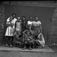 97. EAP054/1/80/97 Reference (shelfmark): EAP054/1/80/97 Title: Recreational photograph [c 1970-c 1995] Scope & Content: 9 people: a woman sitting in an armchair, 2 young women crouching, 5 young women and a boy standing behind. Format of original: 59mm x 59mm plastic negative Collection Area: Endangered Archives Programme Languages: Not applicable Date Range: c 1970-c 1995 Extent: 1 TIFF image