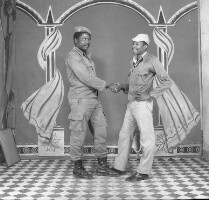 204. EAP054/1/80/204 Reference (shelfmark): EAP054/1/80/204 Title: Recreational photograph [c 1970-c 1995] Scope & Content: Man in military style uniform and another man standing, holding right hands. Format of original: 57mm x 59mm plastic negative Collection Area: Endangered Archives Programme Languages: Not applicable Date Range: 05 Jun 2007 Extent: 1 TIFF image